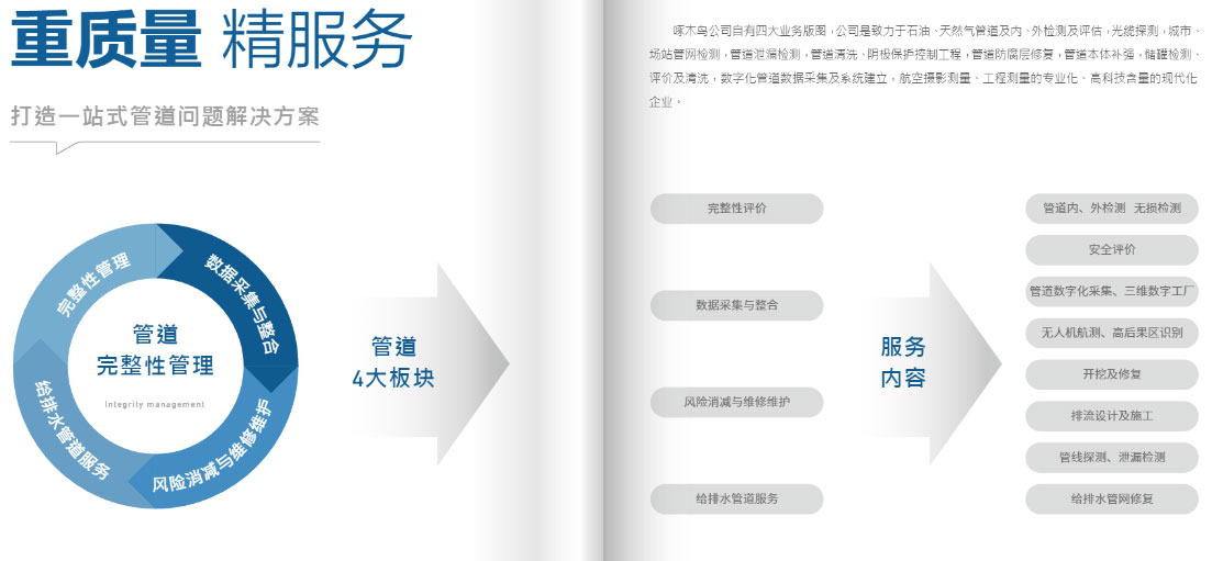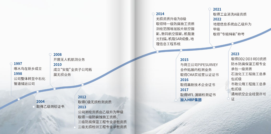 河南省公赌船JCJC710地下管线检测有限公司成立于1997年,注册资本3000万元。公司成立28年来,一直致力于石油、天然气压力管道、压力容器的完整性管理服务。业务涵盖管道内外检测,管线探测,管道开挖修复,无损检测,非接触磁力检测,泄漏检测,储罐检测及评估,电缆光缆检测,阴极保护控制工程,工程测量,管道智能化数据采集及系统建立,三维数字化工厂,数字化交付,航空摄影测量及管道巡线,城市综合管网普查,完整性评价,管道清管、储罐清罐等物理清洗服务。